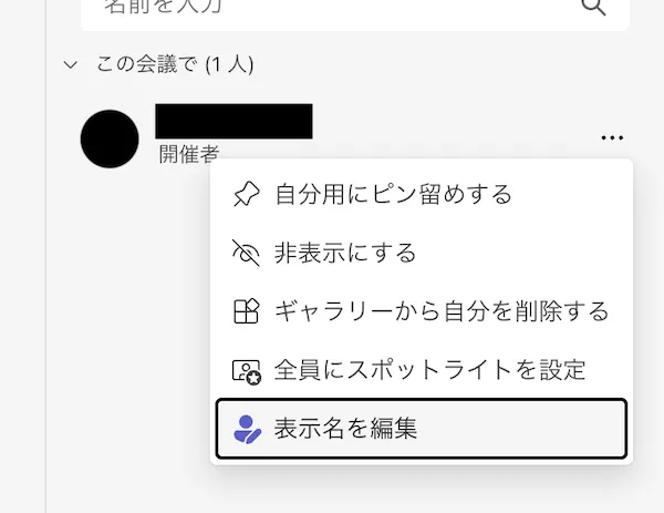 表示名の変更は,会議の開始後に行うことができます.変更すると,その会議の間は,変更後の表示名が表示されます.