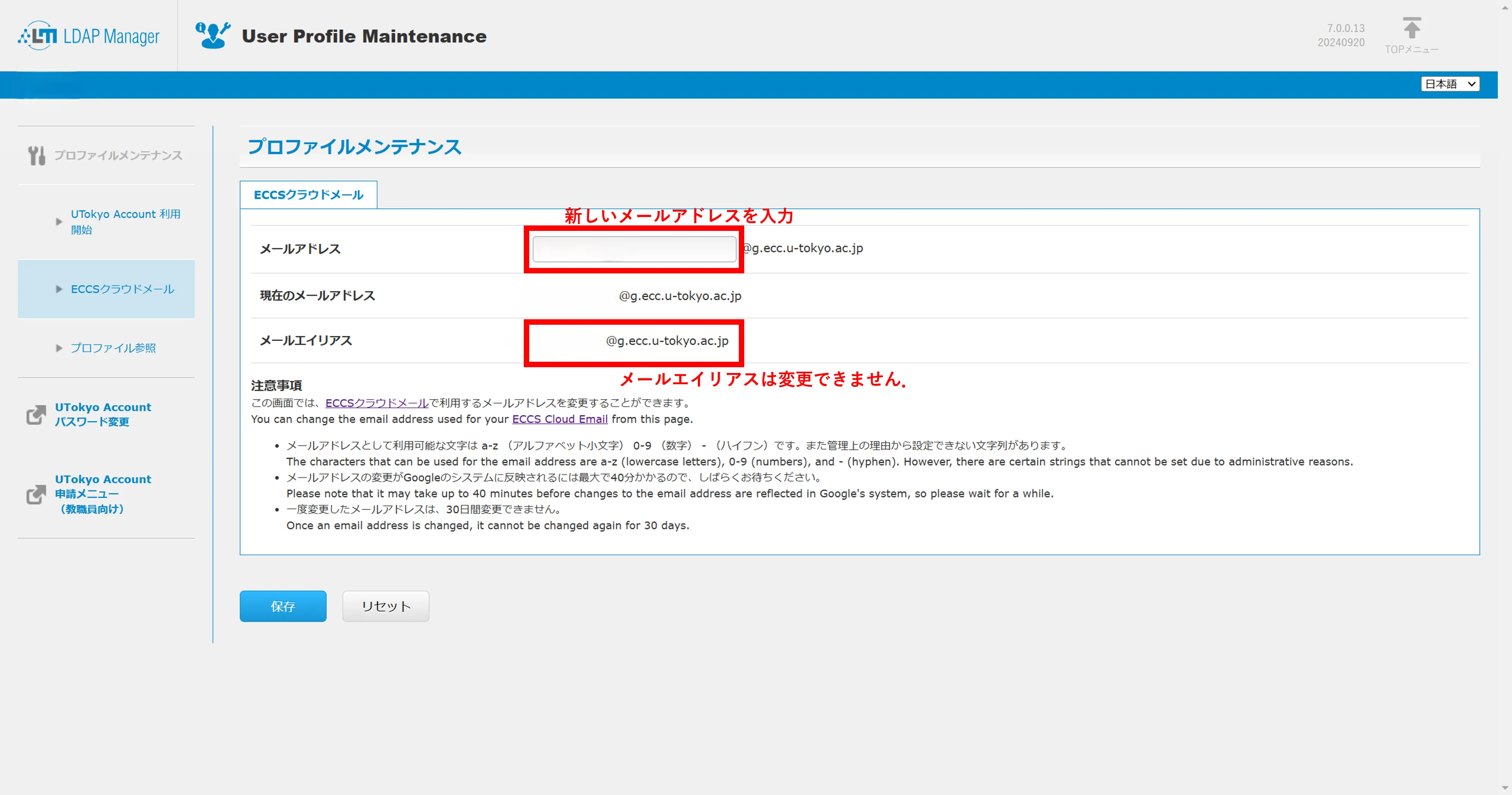 ※既にECCSクラウドメールを利用している場合でも,利用開始の場合と同様にこの手順でメールアドレスを変更することができます.
