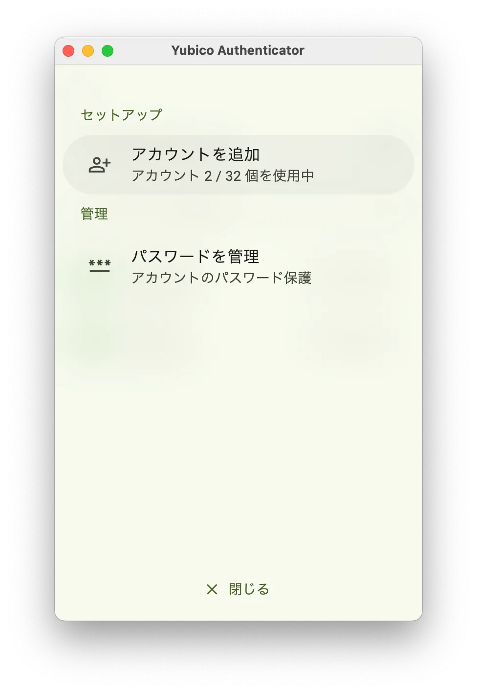 Yubico Authenticatorアプリへのアカウントの追加