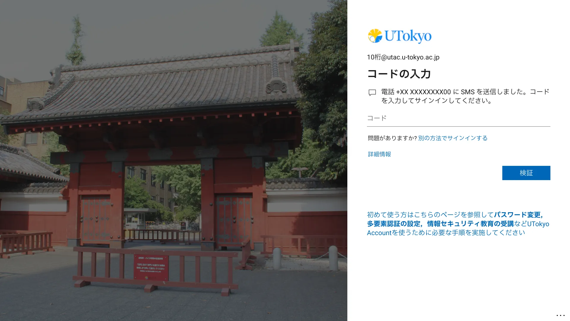 UTokyo Accountでサインイン時(パスワード入力後)に,デフォルトの本人確認方法で多要素認証の本人確認を行う画面が表示されますが,その画面で以下のように操作してください.