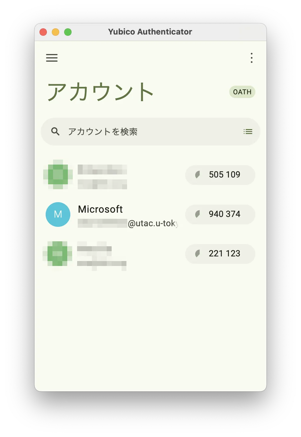4. Yubico Authenticatorアプリにアカウントが追加されていればOKです.