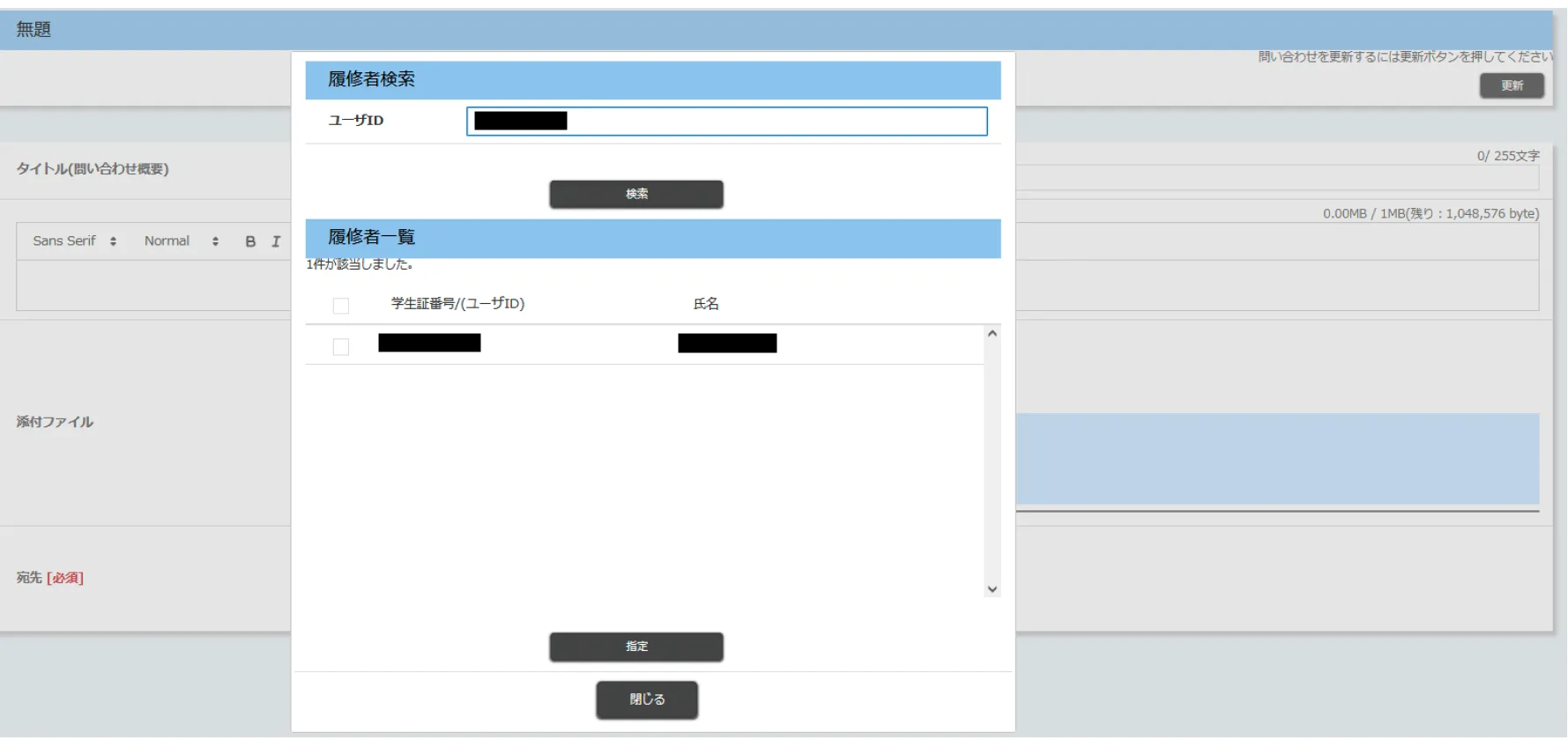 1. 「履修者を検索して追加」ボタンを押すと,履修者検索画面がポップアップで表示されます
